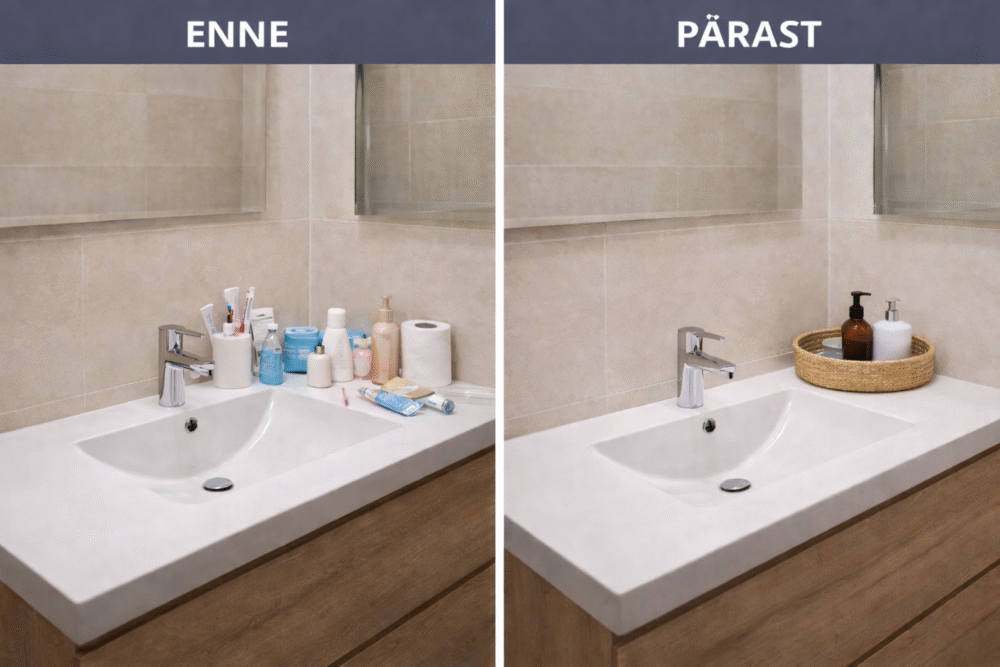 Eemaldada: hügieenitarbed, kosmeetika, elektriseadmed, pesukorv.